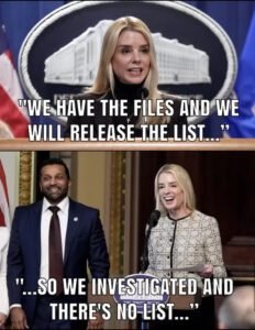 And Trump is again President when the Epstein list is said to “have never existed” …although Trump’s Attorney General previously claimed the list was on “her desk.”