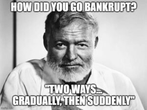 Two ways. Gradually, then suddenly.”