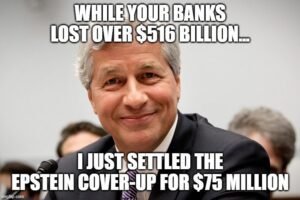 And in an odd twist of events, JP Morgan settled – for a scant $75 Million – a U.S. Virgin Islands’ lawsuit involving Epstein’s sex trafficking charges.