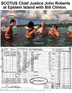 And why don’t the presstitutes show the following picture of Roberts hanging out with Bill Clinton on Epstein island?