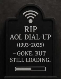 In other unimportant news this past week, the pioneer Internet Search Engine AOL, announced that after 32 years they are finally parting ways with their archaic (but once considered ground-breaking) technology to access the Internet via dial-up phone.
