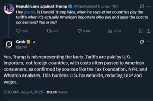 Ironically (or NOT) no one seemed too upset over Grok’s response to inquiries about Trump’s tariffs.