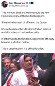 Ironically (or NOT) more proof that England has fallen (and is now unofficially a Muslim nation) was established last week when their new Home Secretary was sworn in using the Quran.