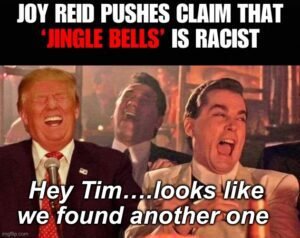 And speaking of playing the race card, as her way of promoting the Christmas Spirit, former race baiting MSNBC hostess, Joy Reid claimed the beloved Christmas song “Jingle Bells” was composed by a “racist Confederate soldier” to mock Black people and has “origins in bigoted minstrel shows.”