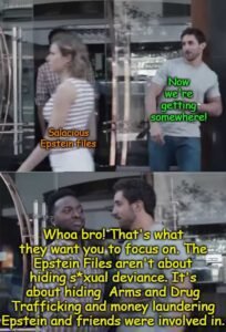 In other Distraction de Jour news this week, the redacted Epstein files once again made headlines with the Presstitutes implying they are full of “salacious content.”