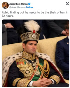 And now that the Trump regime has assured a regime change in Iran – by making sure they oust the Ayatollah Ali Khamenei – we feel it’s only fair to send out a “Heads Up” to a former comedian who’s been in hiding for years.