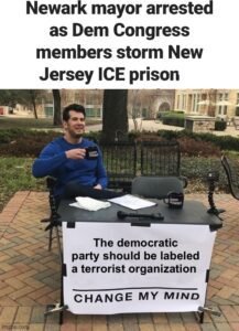 And speaking of stupidity, Newark Mayor, Ras Baraka (Seriously…Baraka?) along with other Democrat members of Congress decided to test the limits of FAFO (F**k Around and Find Out) by leading the charge of attacking ICE Agents doing their job of deporting illegals.