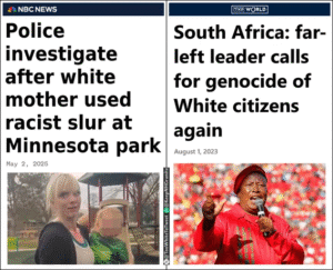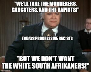 And while we’re on the subject of Wokesters, Liberals and brainwashing, a legion of Democrats went nuts last week over the fact that we welcomed 59 LEGAL WHITE REFUGEES from South Africa seeking safety from the White Genocide that’s been taking place in that region for years.