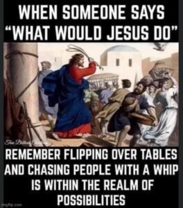 Even Jesus (The Prince of Peace) used a whip on the corrupt “money changers” as he kicked over their tables and threw them out of the temple.