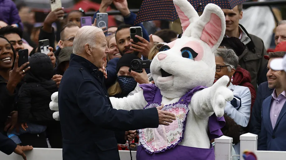 The Easter Bunny realized O’Biden was probably going to say something really stupid (as usual) and had to rescue Joe from the reporters.