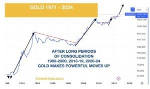 Suffice it to say that gold has been remarkably strong in 2025 (so far) and is following a pattern after a long period of consolidation…see chart below.